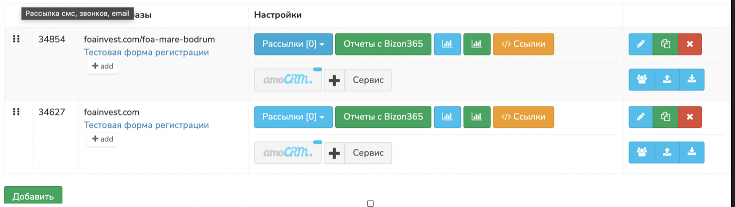 - На сайте настроены две формы заявок: каждая форма передаёт данные в свою базу.