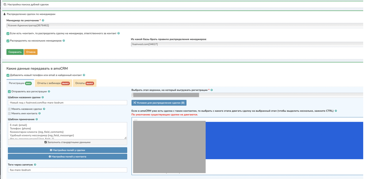 - Сделки поступают в amoCRM с тегами, указывающими на город клиента, что помогает быстро распределять их по отделам. - Распределение по менеджерам