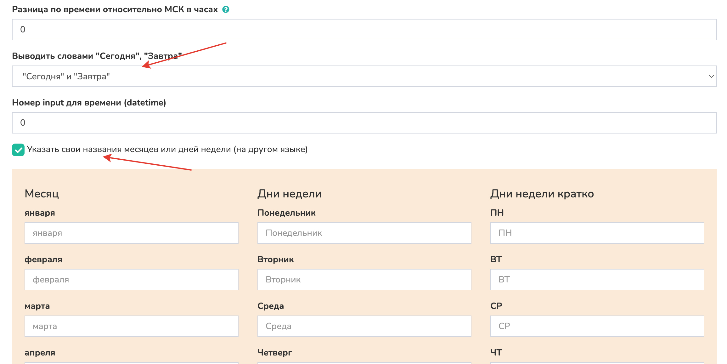Также, если вам необходимо указать названия месяцев или дней недели на другом языке. Или если надо дату словами Сегодня / Завтра.