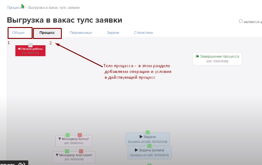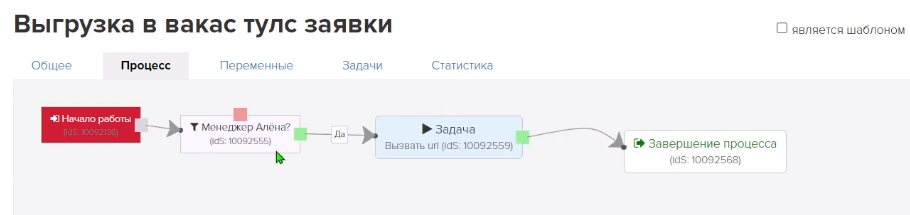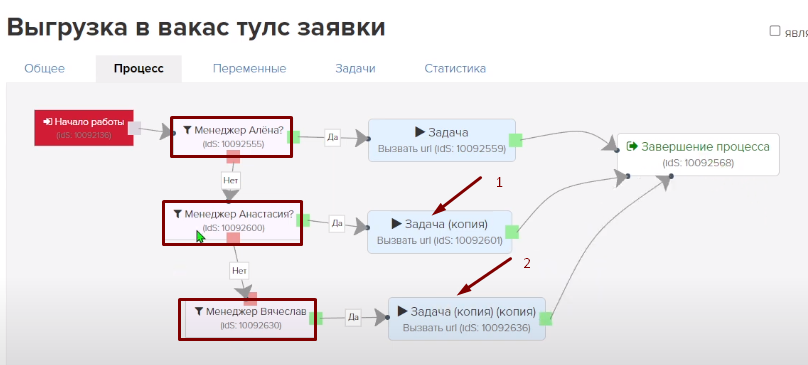Мы показали на примере трех менеджеров, но у вас их может быть больше, точно также делаете для каждого. Если менеджеров больше, повторяете алгоритм, копируете базу с настройками, добавляете блок Проверка и условия и блок - Операцию вызвать URL в созданный процесс по каждому менеджеру.