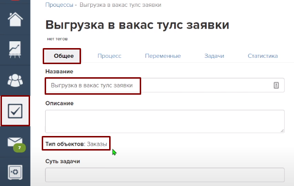 Чтобы наш процесс действовал по нужным нам условиям, задаете конкретные условия вхождения в процесс. Процесс будет стандартный, по типу объекта Заказ. Название пишете такое, чтобы вам было легко его найти.