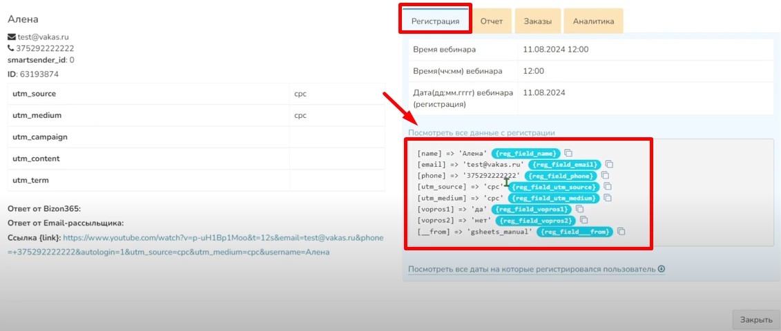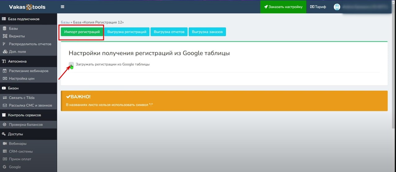 2. Для получения регистраций - вкладка Импорт регистраций (регистрации из Google таблицы).