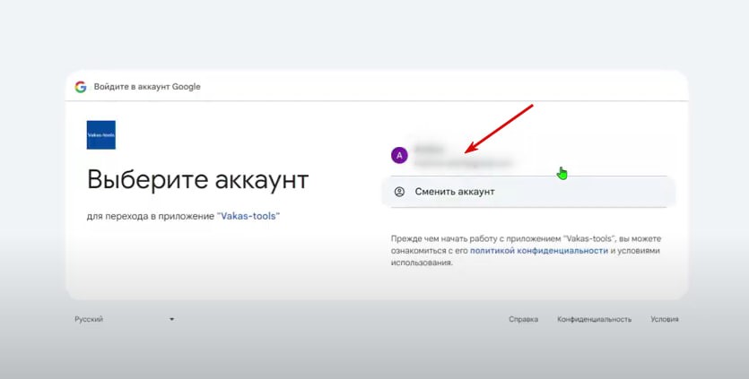 2. Выберите аккаунт Google, который нужно подключить к Vakas-tools.