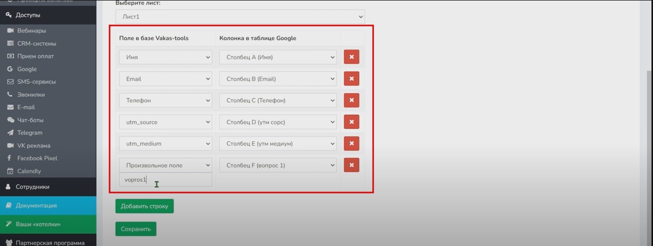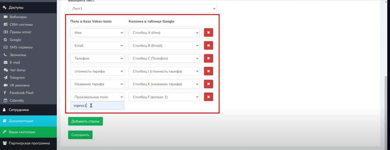 Для загрузки данных в базу Vakas-tools и дальнейшей передачи данных в другие сервисы. Также для настройки авто-рассылок СМС, звонков и email. И для выгрузки данных (регистраций, отчетов или заказов) в Google-таблицы.
