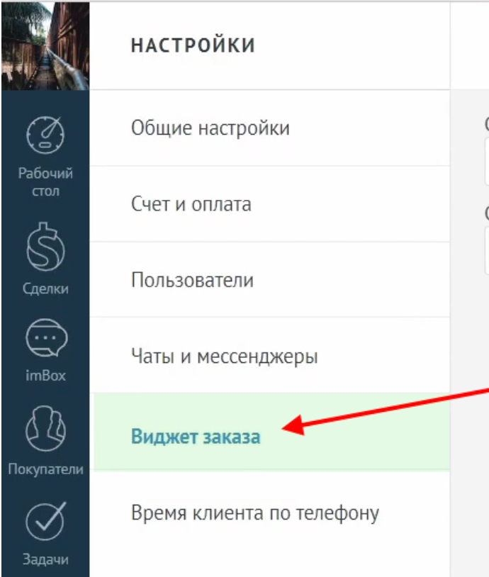 1. Перейдите в amoCRM. В меню слева выберите «Настройки» - «Виджет заказа».