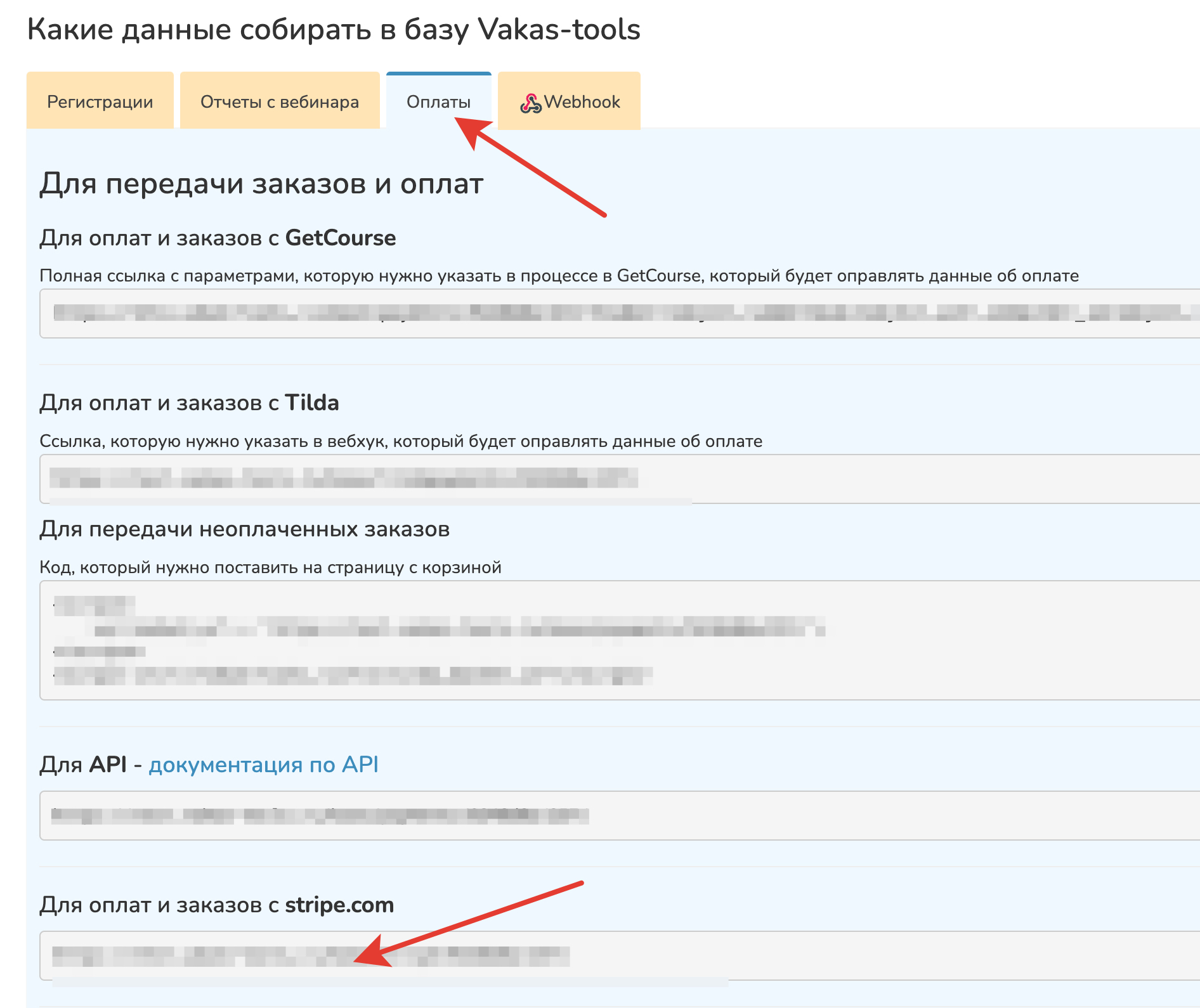 Переходим у нужной базы по кнопке [Ссылки] и копируем вебхук. Берем со вкладки Оплаты.