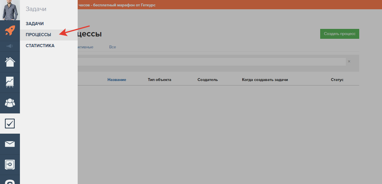 Проще всего следующий процесс создаем копированием предыдущего. Переходим в Процессы и правим прошлую схему. Задержка и Условие нам больше не нужно.
